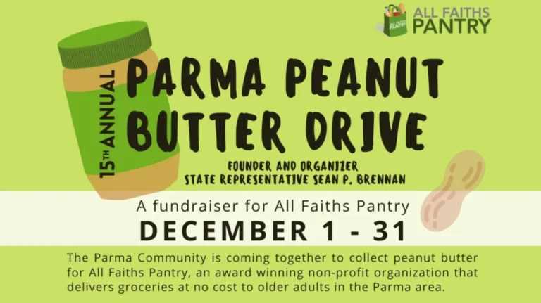 Sue Harris is organizing a KB peanut butter drive to support the Parma fundraiser. Donations can be brought to the main office, and Sue will get it to the pantry.