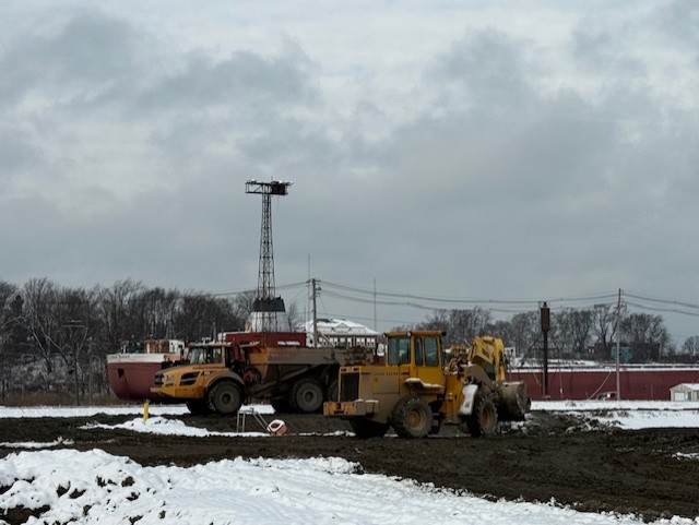 Winter came early in Conneaut, and so did sediment unloading at the Conneaut Creek Sediment Reclamation Facility. Unloading of the sluiceways has begun ahead of schedule. The Kurtz contracted team of EAE Logistics is taking advantage of the freezing weather conditions and has started removing the sediment material from the sluiceways. The material is being beneficially reused at the oil Canadian National coal dock where the material will be used to cap and cover old, contaminated soil from the legacy industrial activities of the rail yard. This is a great use of the material and keeps the material in close proximity to the site, avoiding traveling through town. This project demonstrates projects that fit our mission and objective of protecting our environment through the great environmental services that Kurtz provides. We are grateful for our project partners and look forward to another great year in Conneaut, Ohio in 2026!